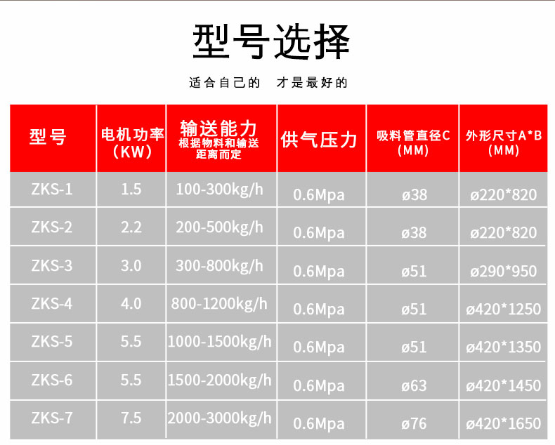 【物料要求】:粉末,顆粒類物料均可以輸送,一般粒度在400目-3cm之間為宜